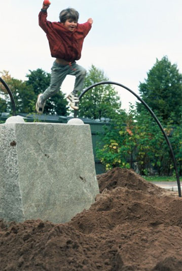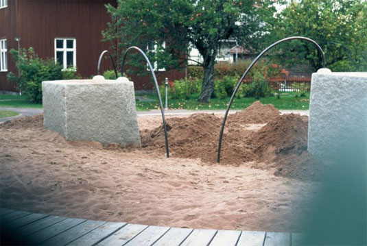 Lek-Sand 3 skulpturer i granit och koppar och planering av parkanläggning. Leksand 2004