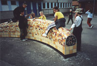 | Bananer Lecablock och klinkers 4,5 x 0,9 x 0,4 m Söderholmsskolan, Vårberg 2000 |