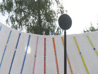 | Toleforssoluret lecablock, glasmosaik, järn 300 x 100 x 60 cm Axel Lagerfelt, Tolefors Gård Linköping 2008 |
