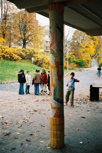glasmosaik, elevmedverkan, Fittja 2000