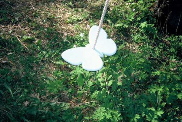 Blåvinga, gunga i björkplywood målat med oljefärg |