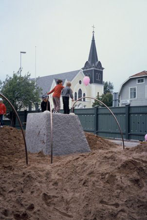 Lek-Sand 3 skulpturer i granit och koppar och planering av parkanläggning. Leksand 2004