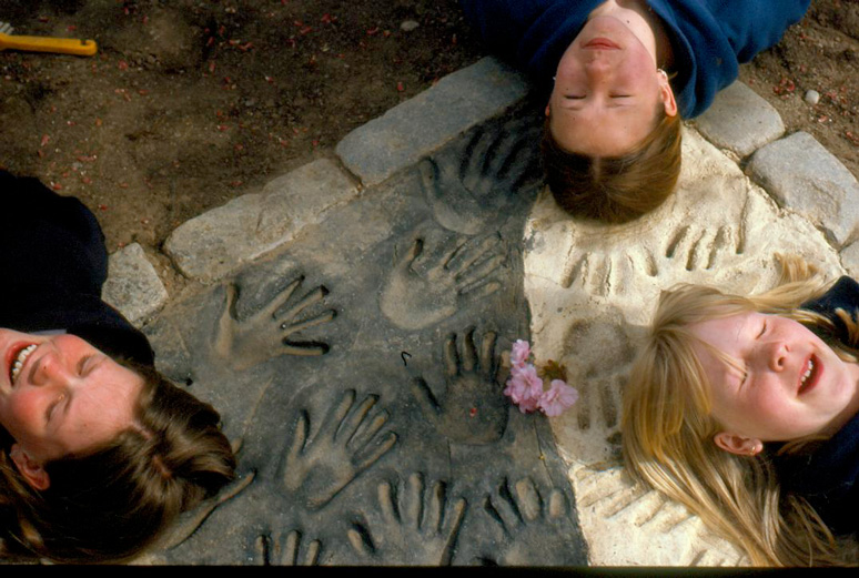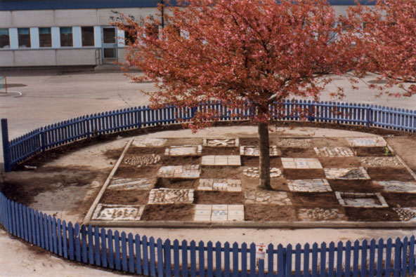 Oasen Park med 24 mosaiker i sten och betong Söderholmsskolan, Vårberg 1996 Elevmedverkan