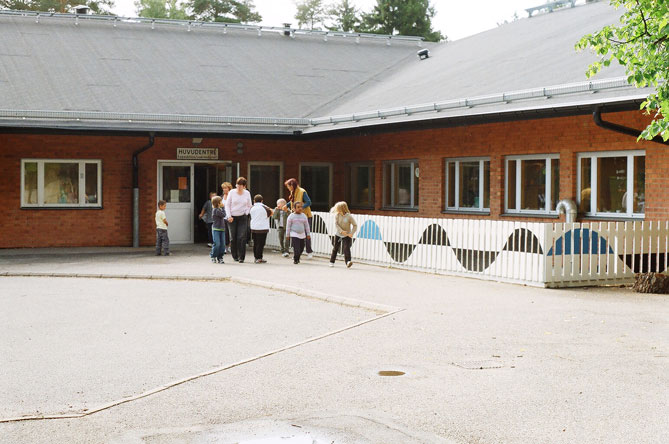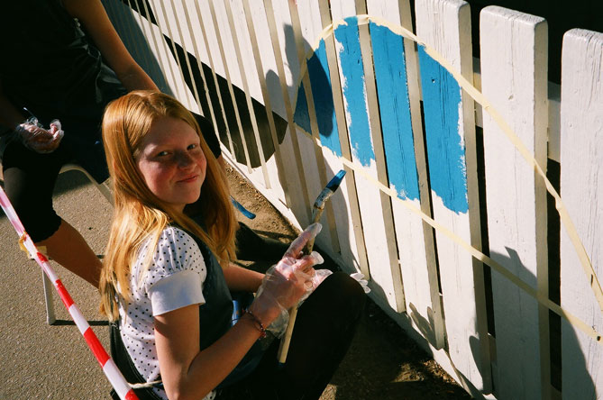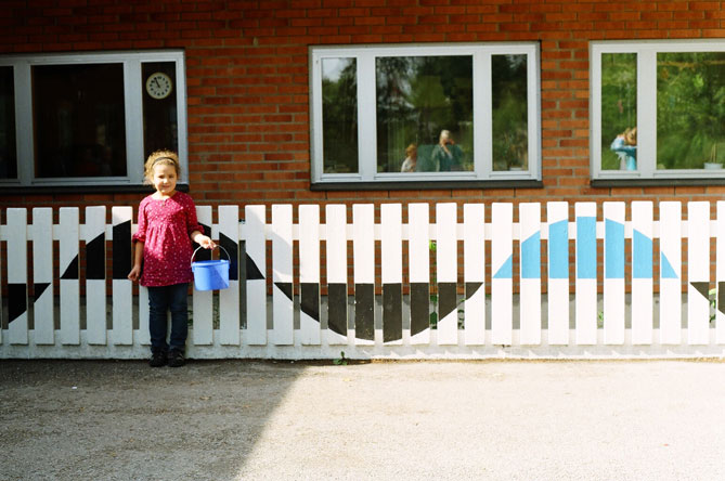 Svart bäck alkydfärg på trä utfört tillsammans med elever i åk 5 Del av skolgårdsprojekt på Svartbäcksskolan,Svartbäcken, Haninge kommun 2008